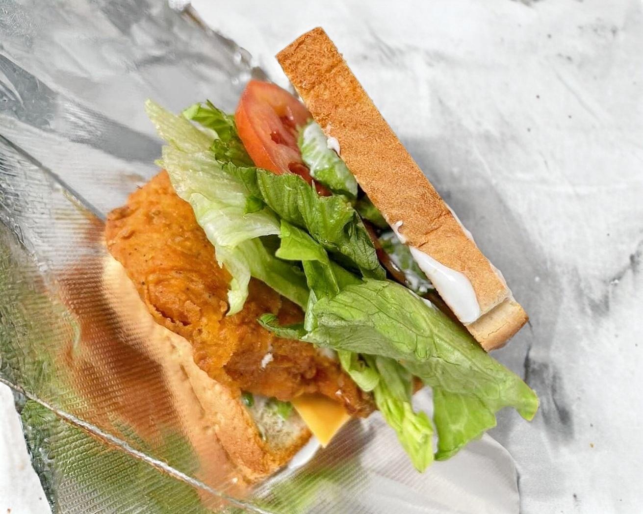 pechuga empanizada,tomate,lechuga,aderezo ranch y aguacate