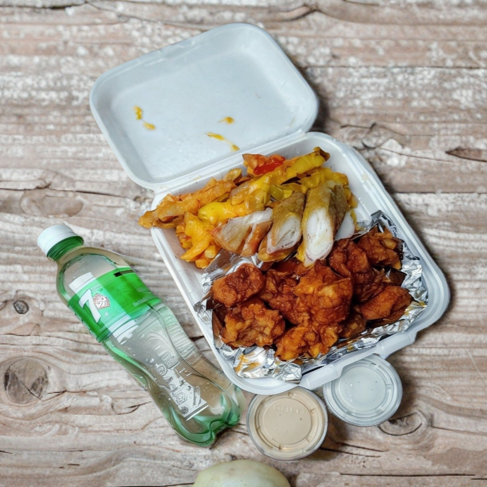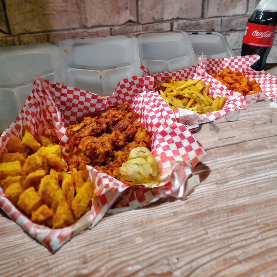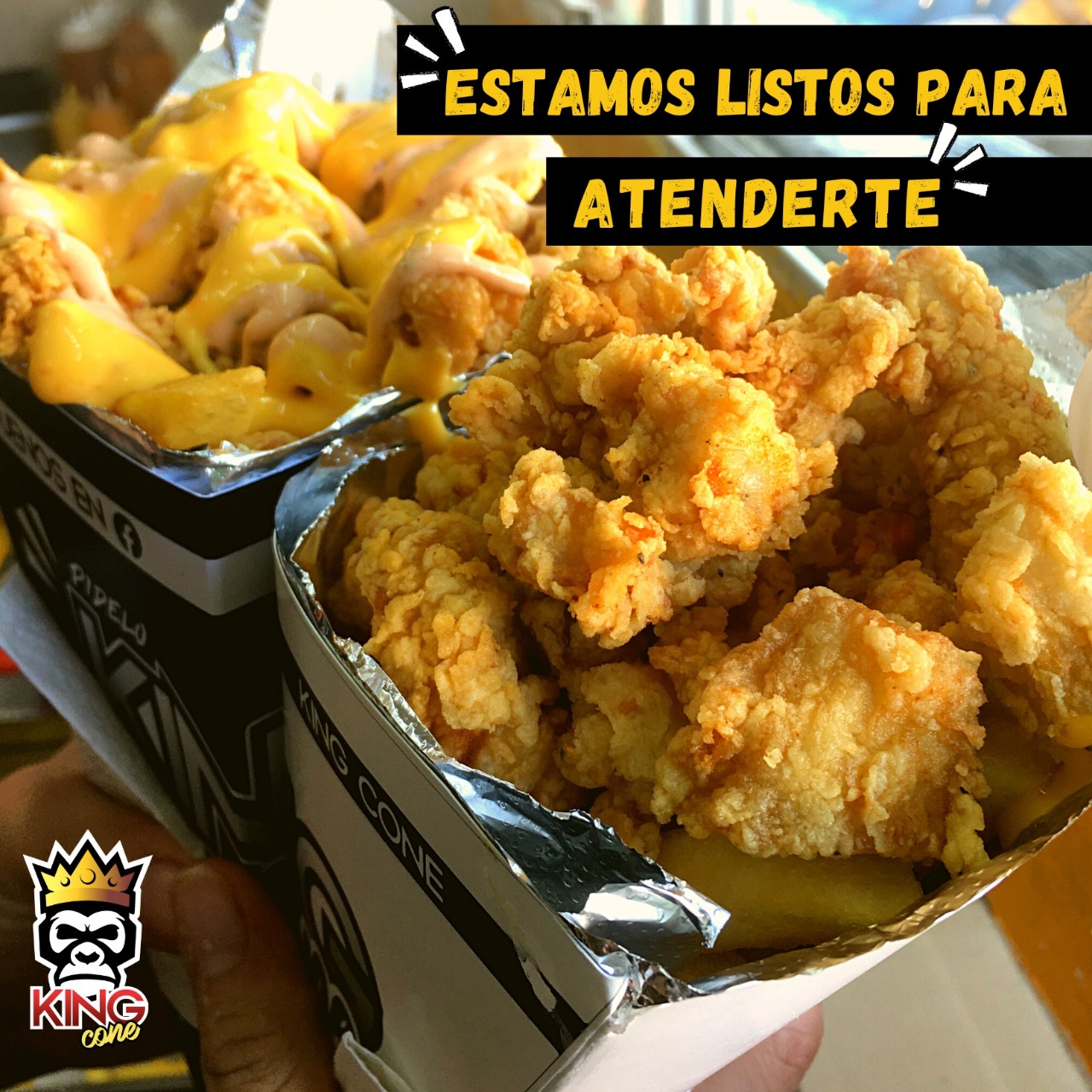 Combo de platillo de Boneless o Alitas con papas fritas con queso a elegir, puedes agregar arroz frito o cangrejo empaizado, incluye refresco de regalo en existencia