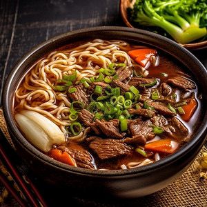 Caldo rico y profundo con fideos frescos, res tierna, alga nori, naruto (pastel de pescado) y huevo marinado. ¡Un clásico que te reconfortará!