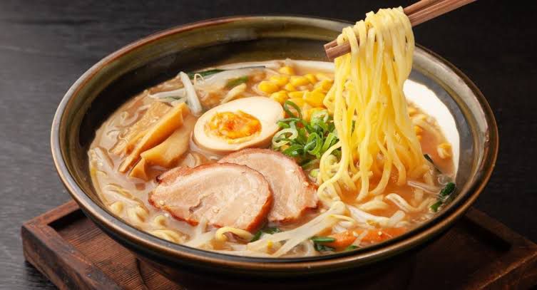 Caldo tradicional con fideos, puerco marinado, alga nori, naruto (pastel de pescado) y huevo. ¡Sabor profundo y delicioso!