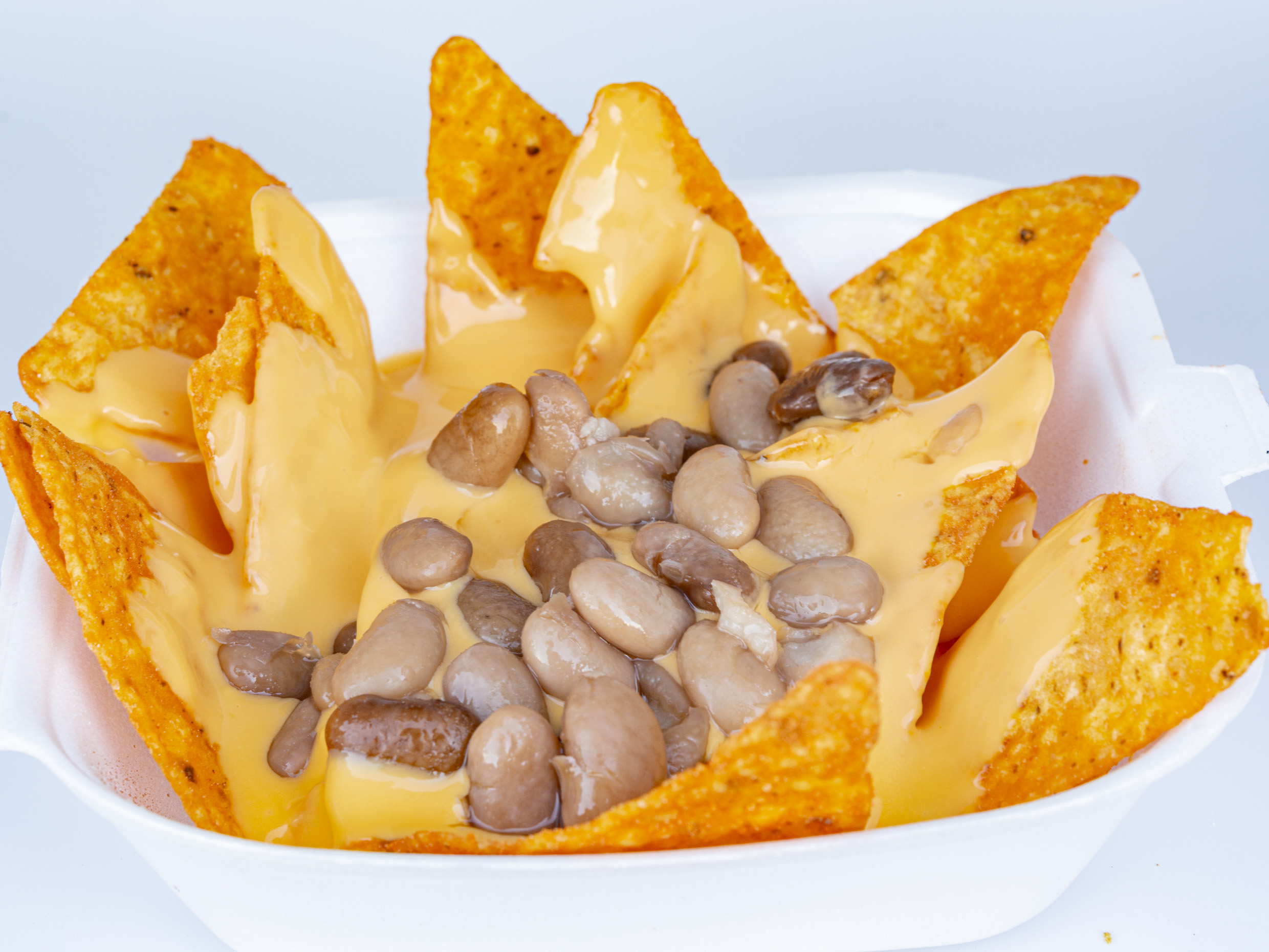 Doritos rojos o tostistos morados con queso para nachos y frijloes