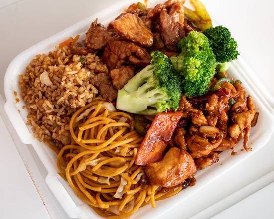 Arroz/Espagueti y 3 guisados