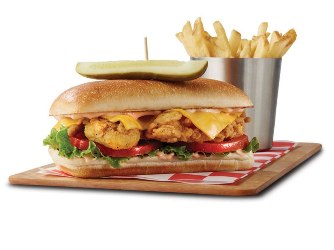 Crujientes tiras de pechuga de pollo empanizada,con doble queso americano, lechuga, tomate, y aderezo Ranch en un delicioso pan hoagie tostado.