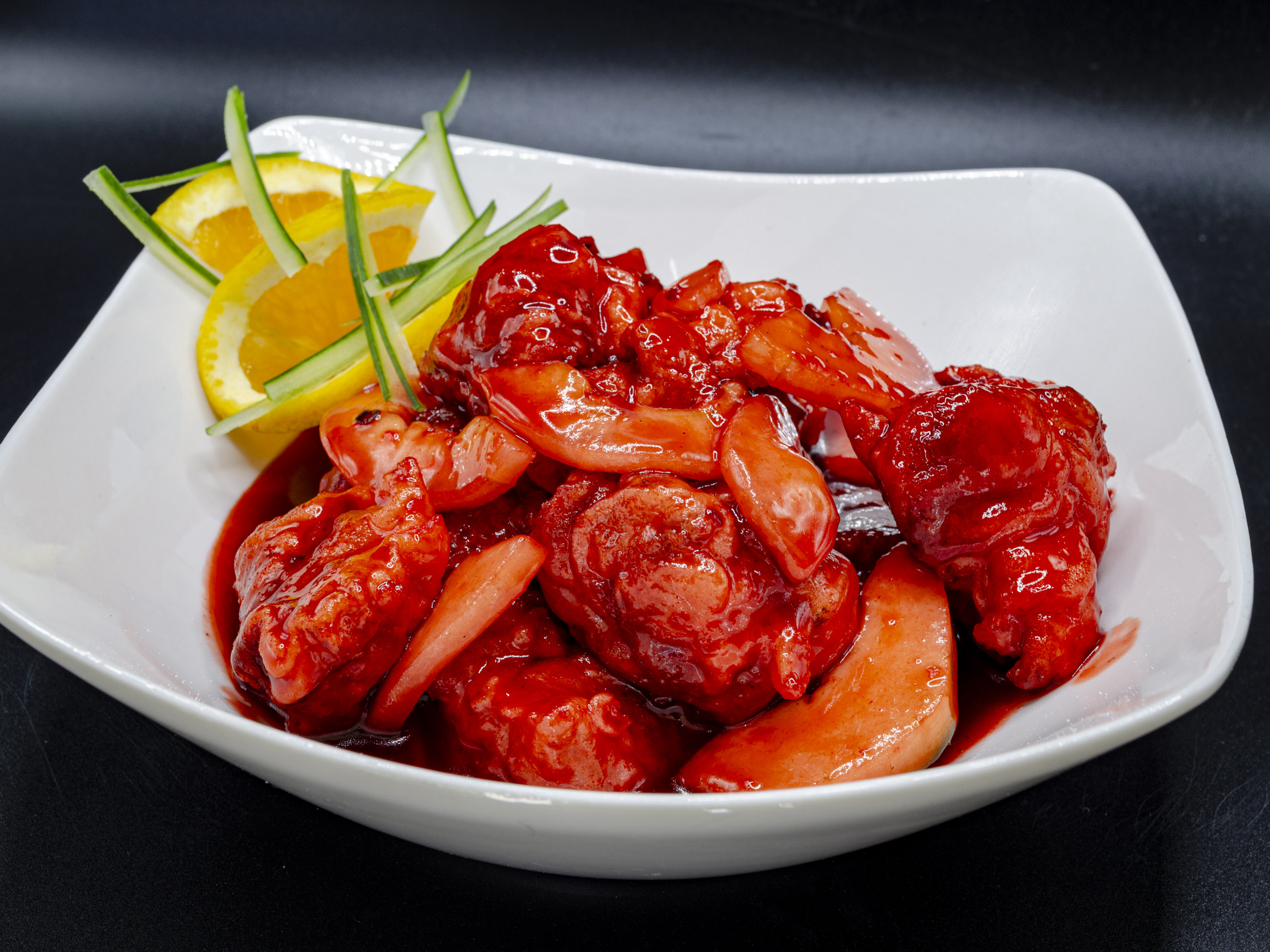 Pollo bañado en salsa agridulce
