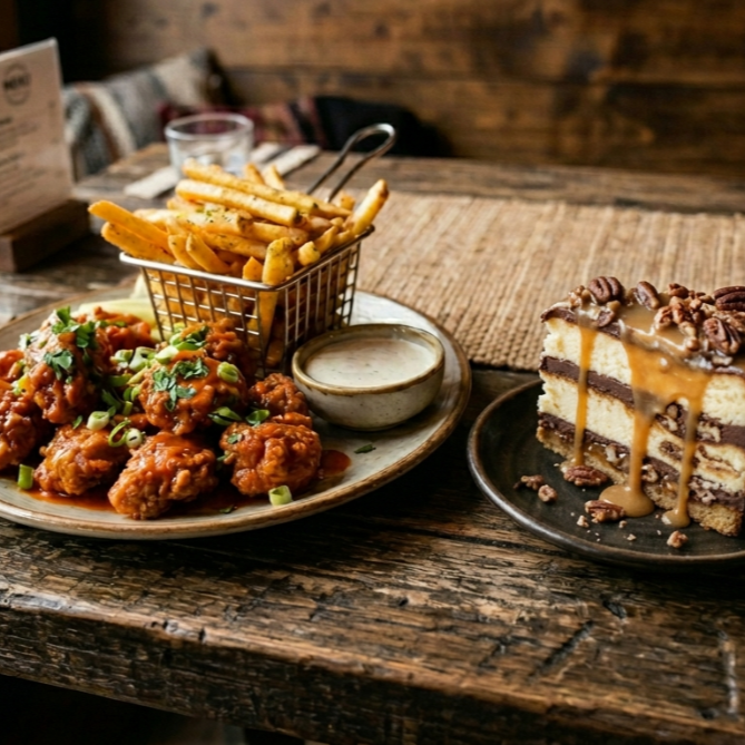Orden de Boneless Bbq con Papas*1 + Rebanada de Pay Tortuga*1