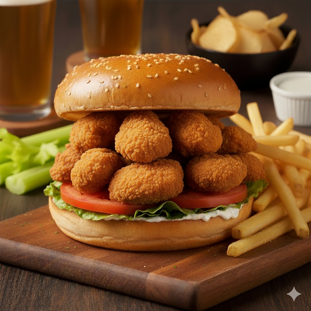 500gr de boneles con salsa búfalo, porción de papas fritas, zanahoria, apio y ranch