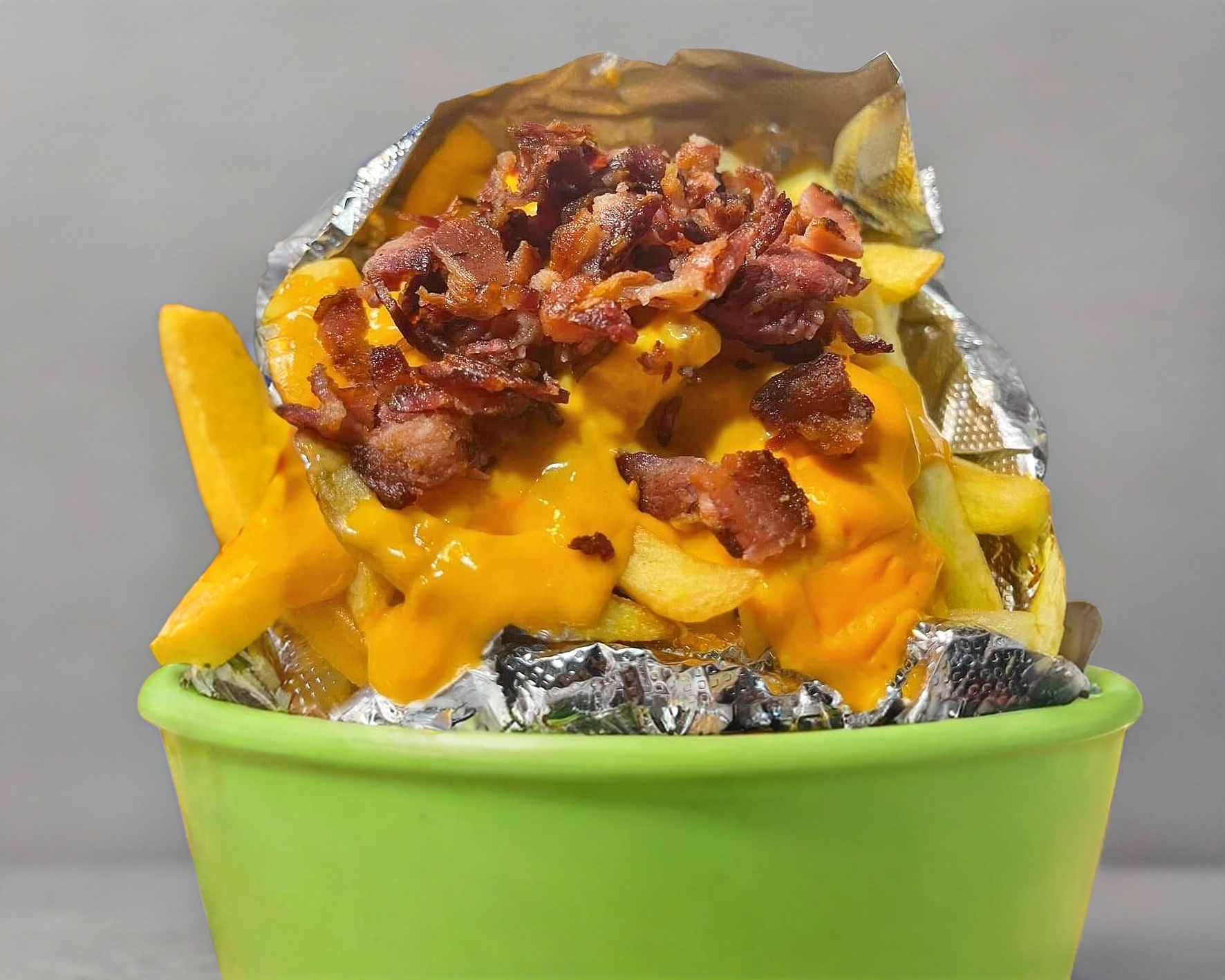 papas con queso amarillo y tocino
