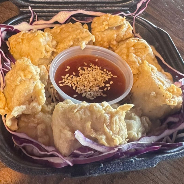Camarón, cebollín, furikake, chile japonés, katsuito y spicy mayonesa.