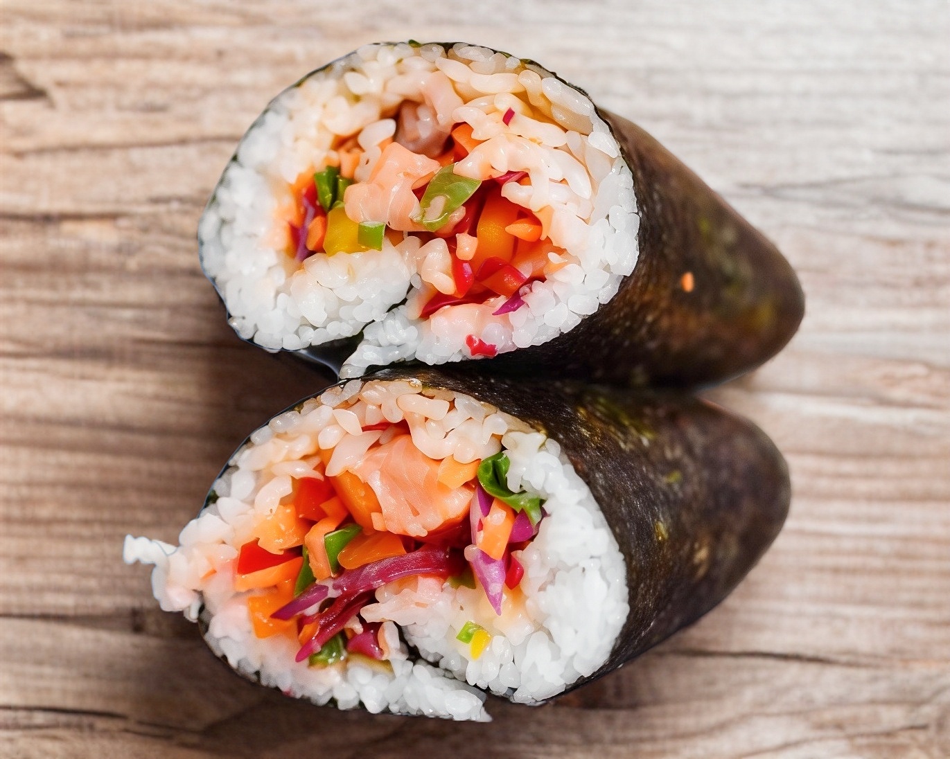 Rollo de arroz para sushi con 1 proteína, 4 toppings y 2 salsas al gusto.