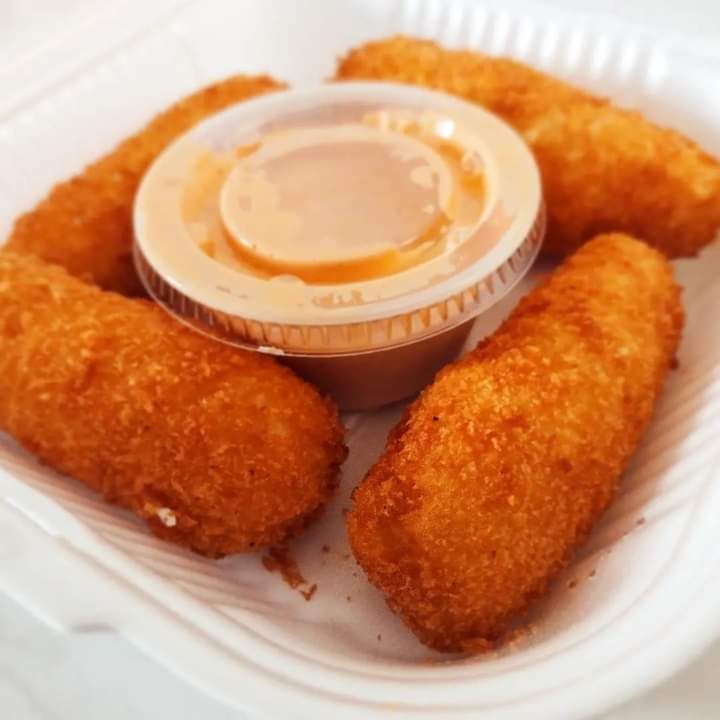 Camarón, surimi y philadelphia, bañado en crema de coco.