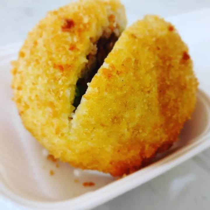 Camarón, surimi, piña en almíbar y aguacate, bañada en crema de coco