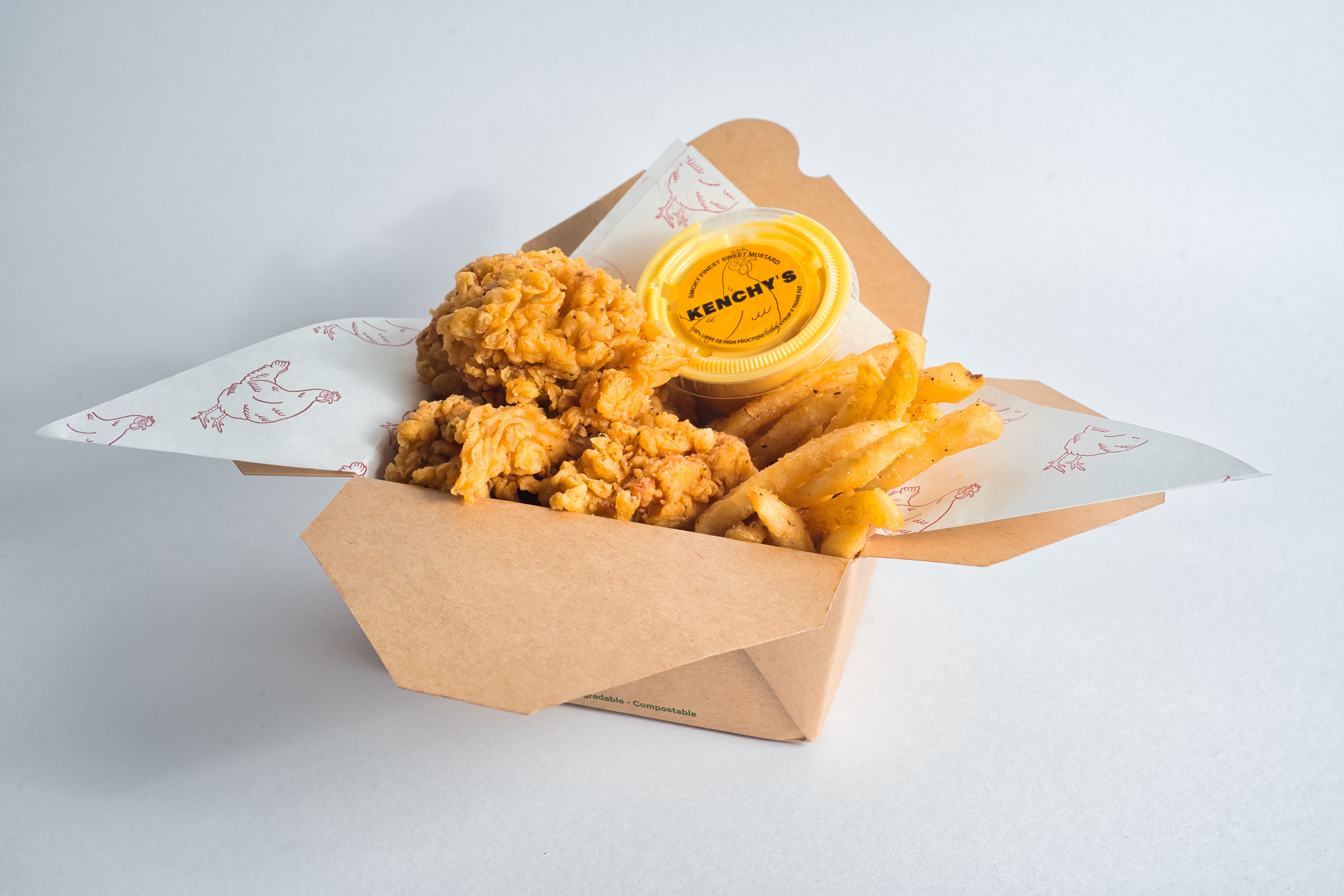 Jugosa pechuga de pollo empanizada, pan brioche, lechuga fresca, tomate, cebolla morada, pepinilos, mayonesa, mostaza.
