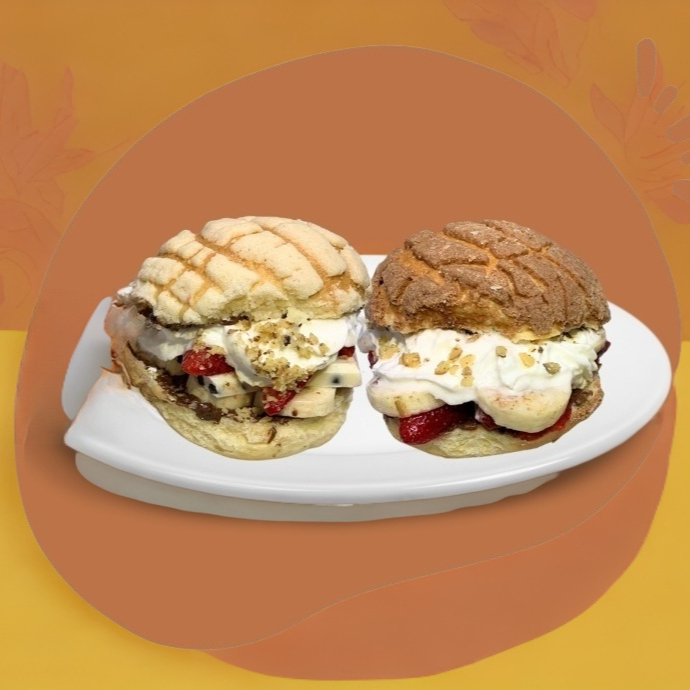 Ricos platanos con base de crema y un ingrediete a elegir, para terminar con crema batida y un barquillo de chocolate.