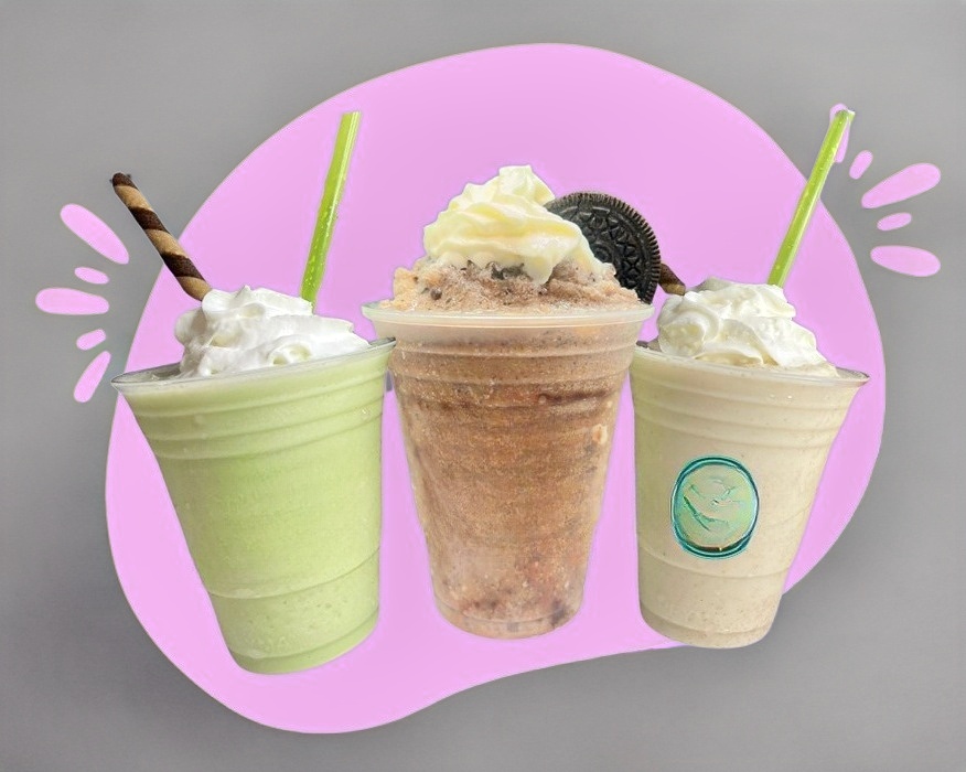 Deliciosos frappés a base de crema a elegir con crema batida chispas y barquillo de galleta.