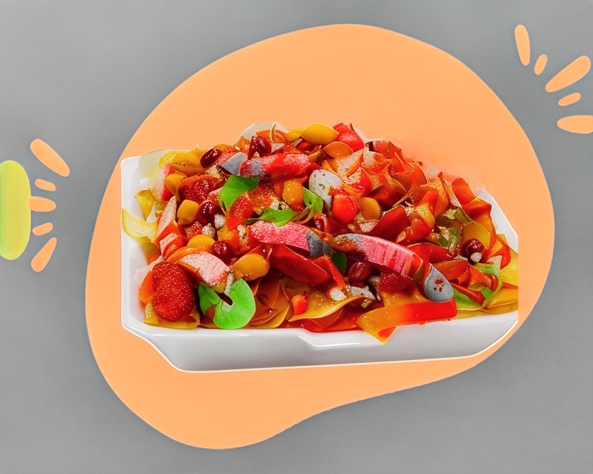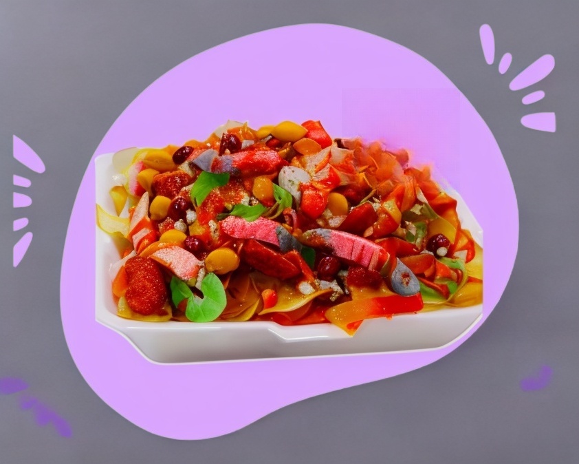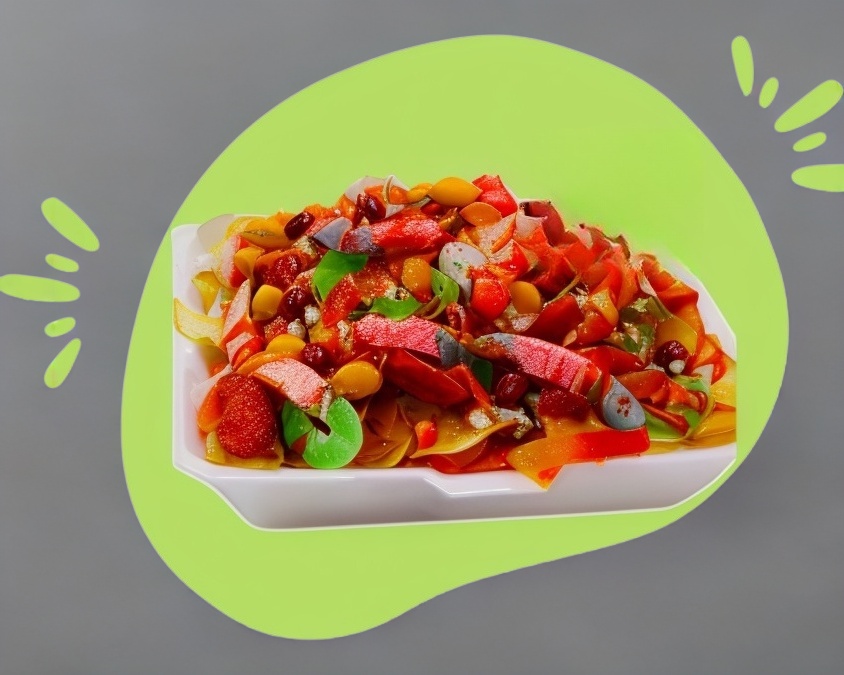 Cheto rojo con repollo, aguacate, cueritos, limon, crema y salsa valentina.