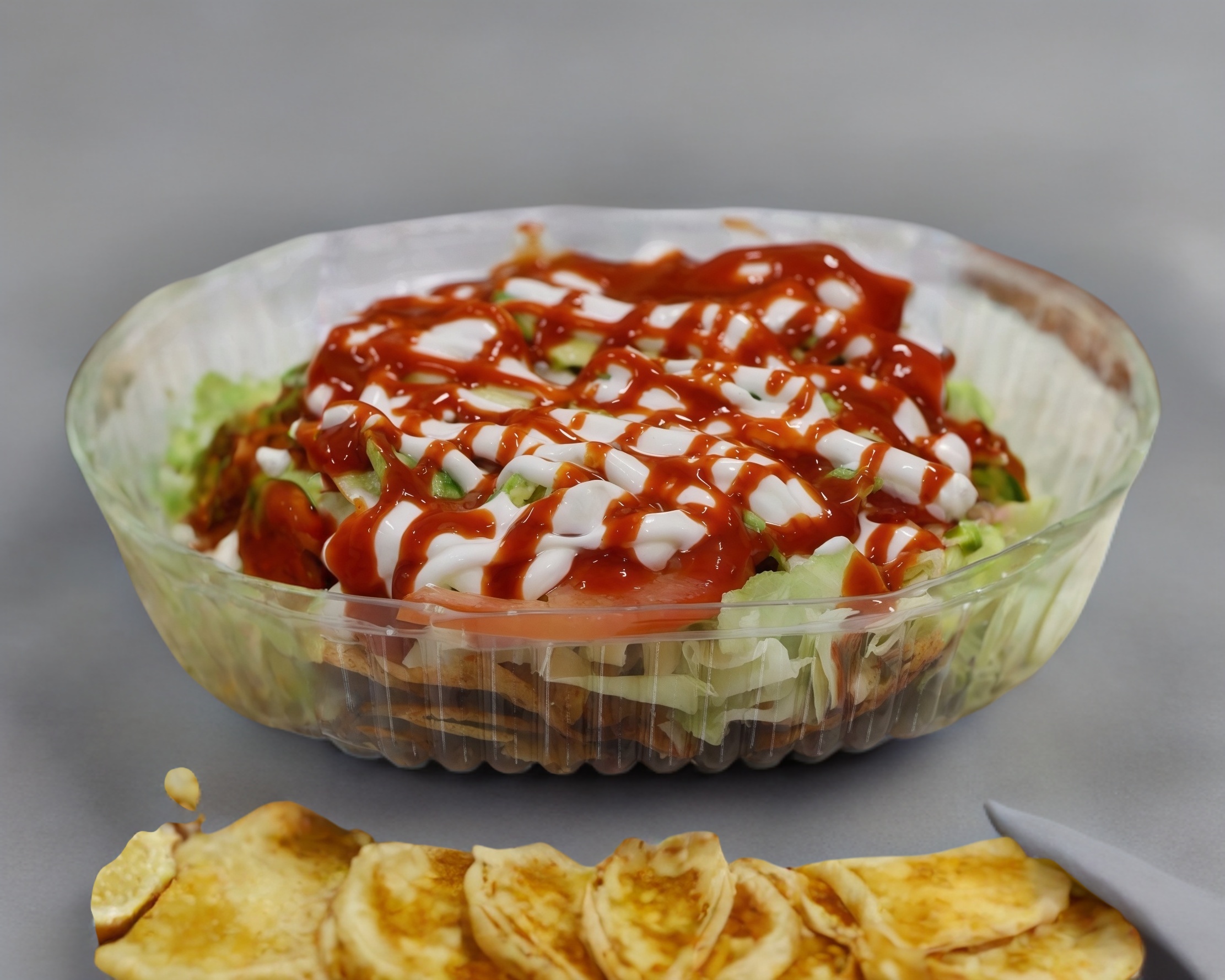 Chicharrón con repollo, cueritos, aguacate, tomate, crema, limón y salsa valentina y ricas tostaditas preparadas con repollo.