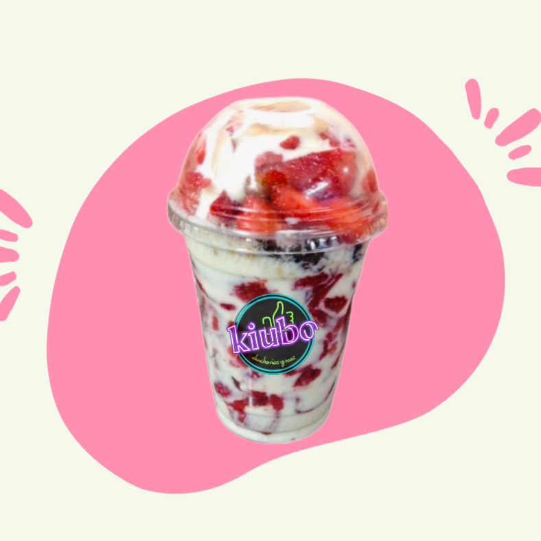 Vaso en capas con fresas naturales, crema dulce y galleta crujiente, combinadas para lograr el balance perfecto.
