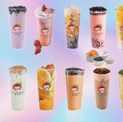 1 Boba milk tea, 2 taro milk cap tea, 3 strawberry milk, 4 brown sugar boba tea, 5 strawberry milk tea, 6 mango milkshake, 7 green boba tea, 8 yogurt original, 9 super fruit tea, 10 thai boba tea, 11 Oreo boba milk tea, 12 mango tea.