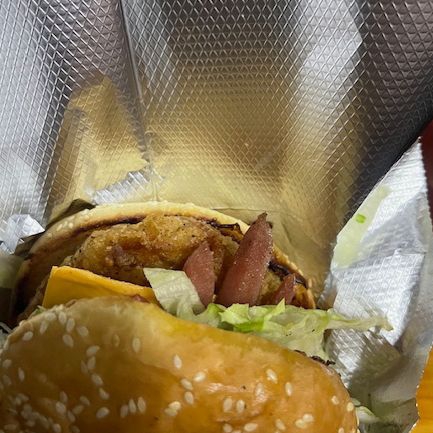 Doble carne100% deres ,doble queso ,doble jamon ,doble winnie , lechuga , tomate , cebolla guisada , aguacate , y pepinillo.