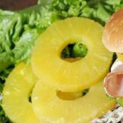 Carne, queso, piña, winnie, jamón, lechuga, tomate, cebolla y líquidos.