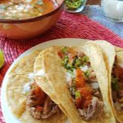 1/2 kg Con tortillas, salsa, cilantro y cebolla.