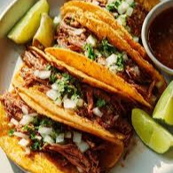 5 Tacos de maíz de nuestra rica birria acompañados de su jugo, aguacate, cebolla y nuestra rica salsa