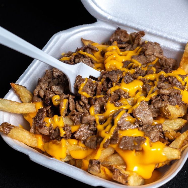 400 grs de Papas fritas con bisteck de res y queso de nachos
