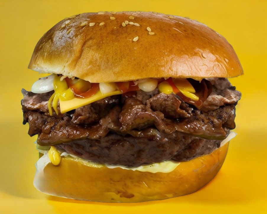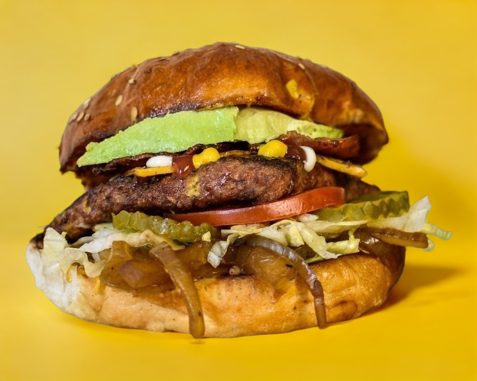 Bistec, aguacate, lechuga, mayonesa, mostaza