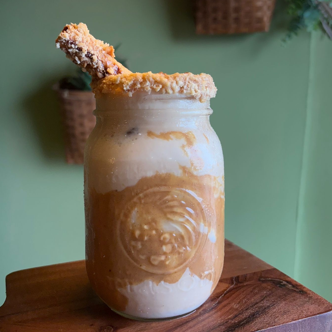 Bebida de crema de cacahuate con saborizantes de la casa