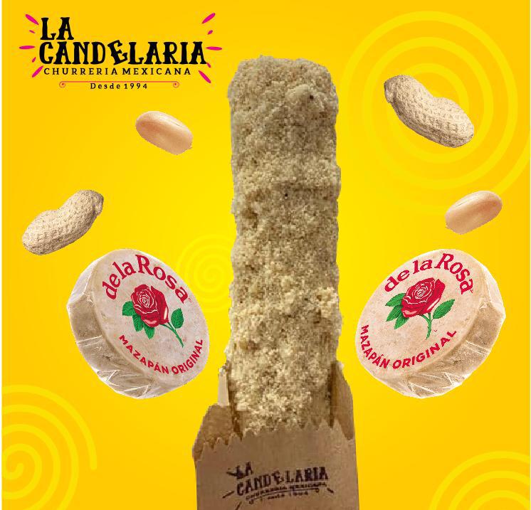 Churro espolvoreado de Mazapán relleno con 1 sabor. (RELLENO SE MANDA APARTE)