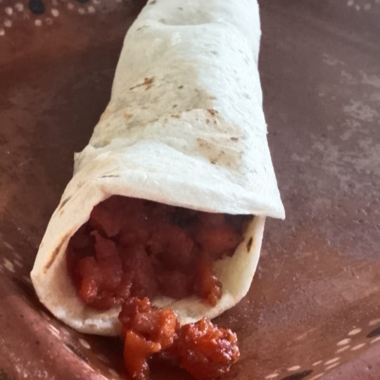 burrito de chicharron pella en rojo