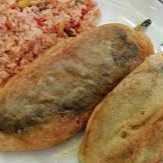 2 chiles poblanos rellenos de queso acompanados de arroz y frijoles
