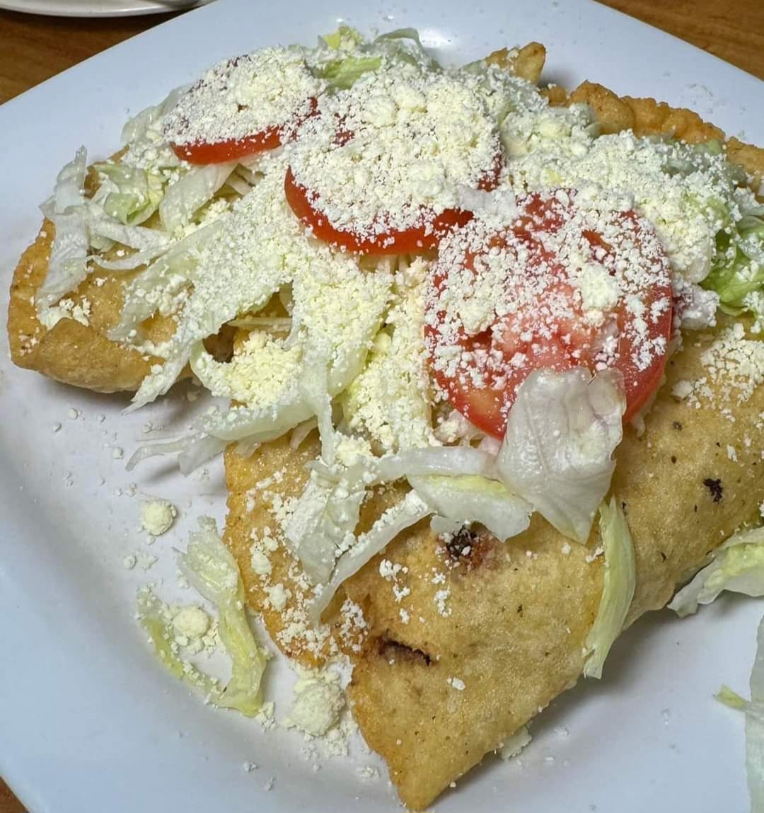 Gordita pasasa en aceite , con frijoles negros ,lechuga, cebolla.carne a elegir aguacate