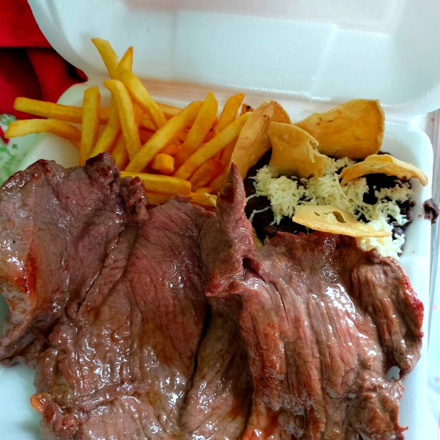 Cecina con su ricas papas fritas, frijoles refritos su totopos