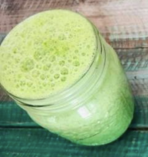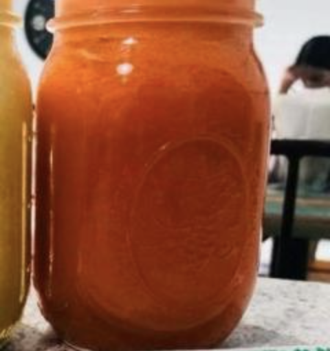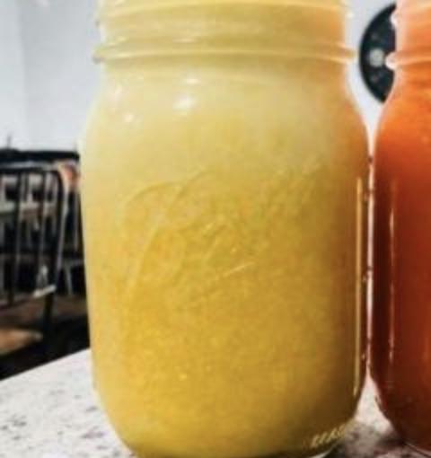 Espirulina, jugo de naranja, toranja y cúrcuma.