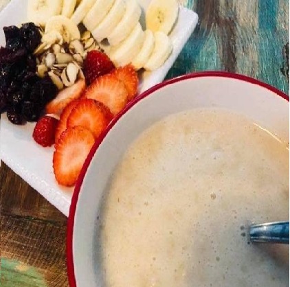 Plátano, blueberry, fresa, cacao, almendra, canela y hemp.