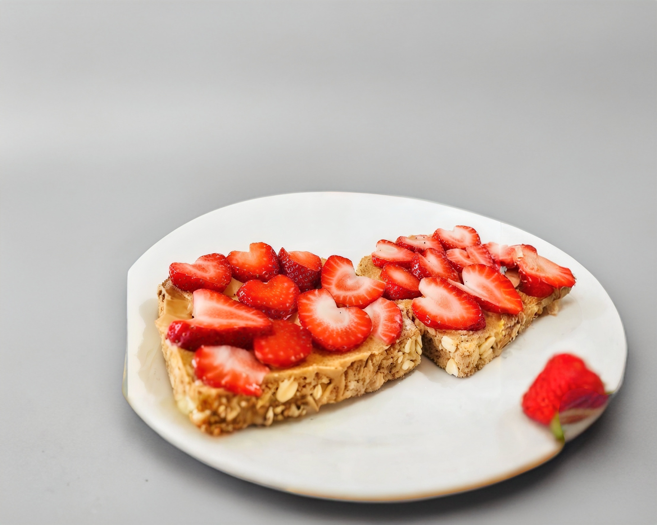 Pan ezequiel con crema de cacahuate, fresa y hemp.