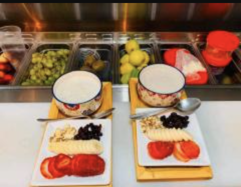 Mix de verduras, durazno o manzana, fresa, nuez, almendra y cacahuate. Favor de indicarnos que fruta gustaría durazno o manzana, mango esta fuera de temporada.