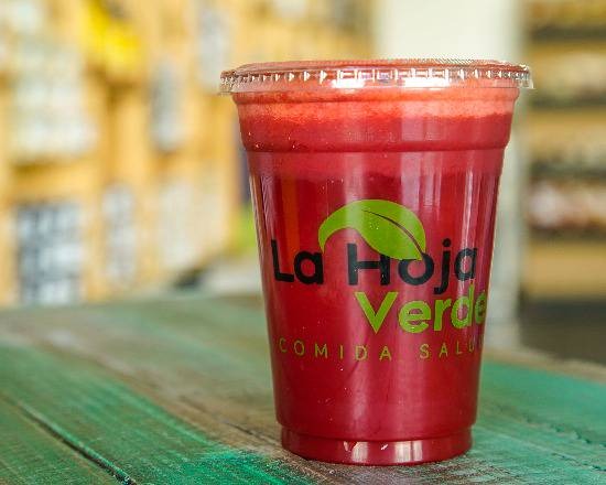 Zanahoria, jugo de naranja, fresa, espirulina y cúrcuma.