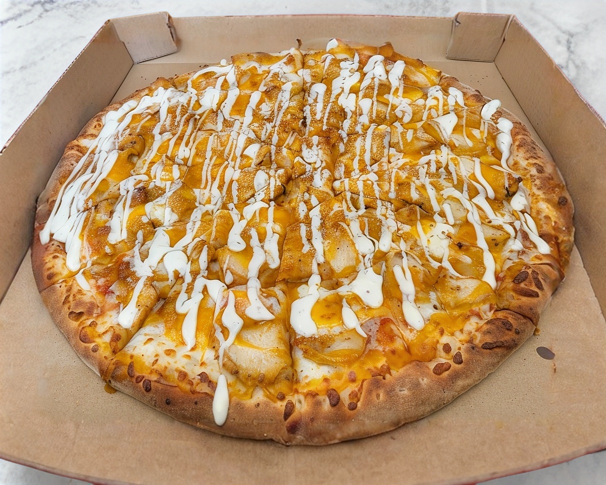 PIZZA GRANDE CON 600 GRS DE BONELESS, BAÑADA EN LA SALSA DE TU PREFERENCIA Y ADEREZO RANCH