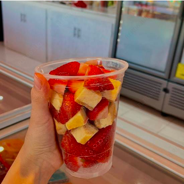 Fresas congeladas con crema, chocolate, pay de queso y nuez o almendra.
