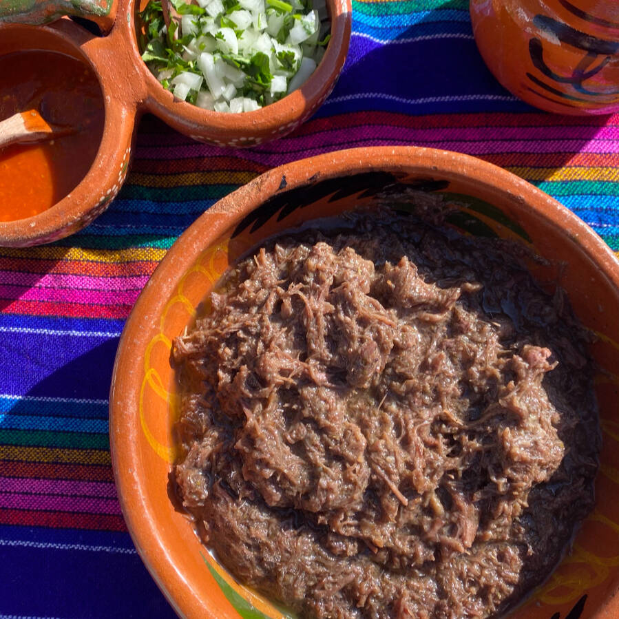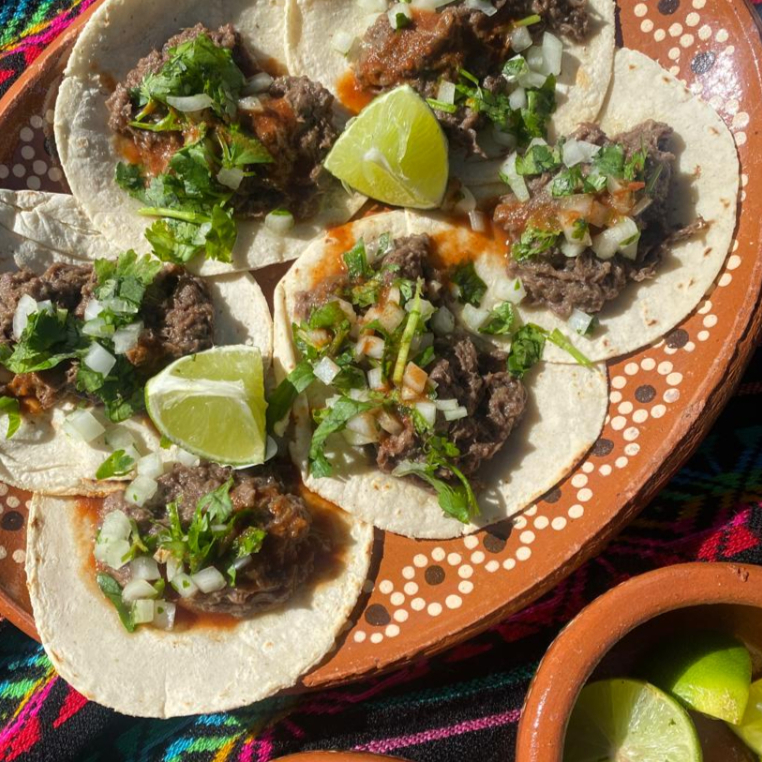 Kilo de barbacoa, con sus complementos tortillas, cilantro, cebolla, salsa y limones