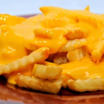 Papas fritas con queso amarillo.
