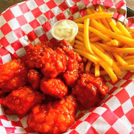 350gr de boneless con salsa a elegir, papas fritas, aderezo y catsup