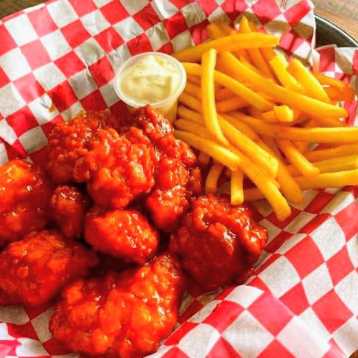 Porción de papas fritas crujientes bañadas en queso fundido.