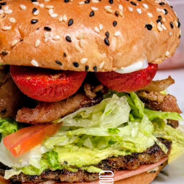 Opción clásica y equilibrada con carne de res, vegetales frescos y pan suave.