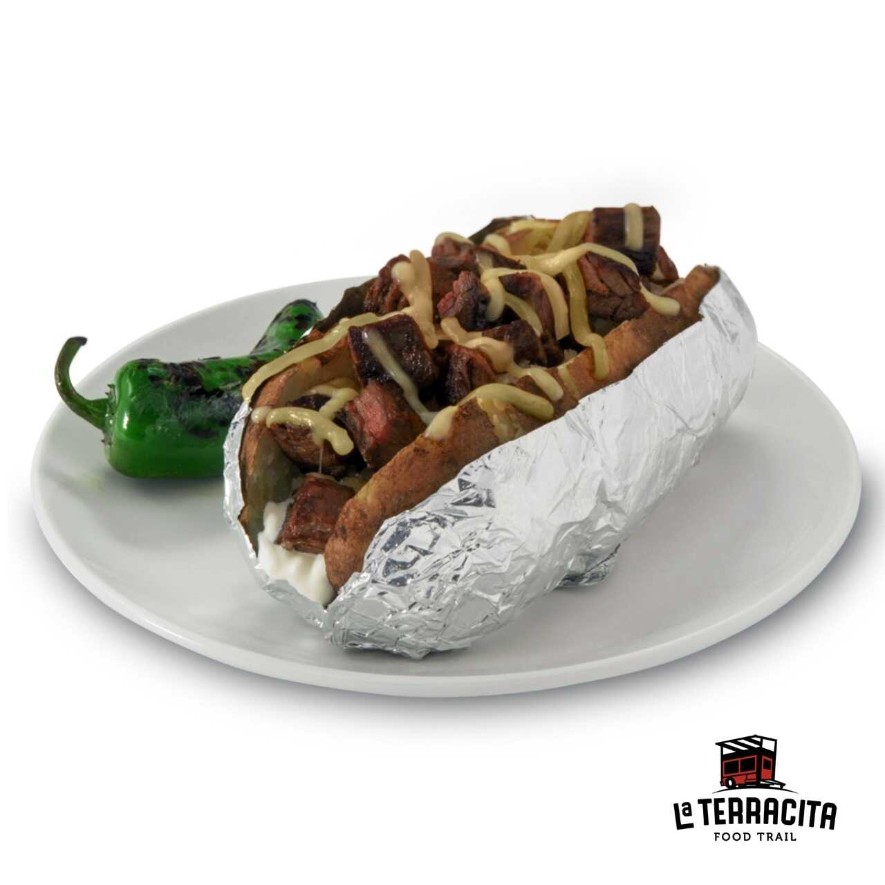 Papa Asada con Carne Asada