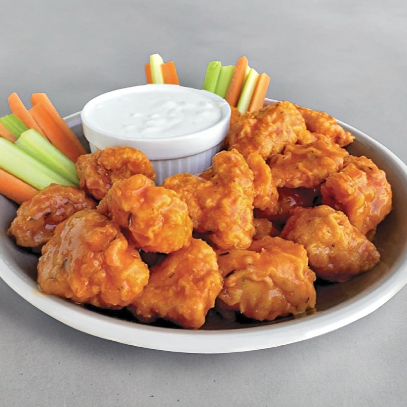 300 gramos de jugosos trocitos de pechuga de pollo empanizados acompañados de aderezo ranch Y zanahoria. Los puedes pedir Naturales o bañados en cualquier salsa de las alitas