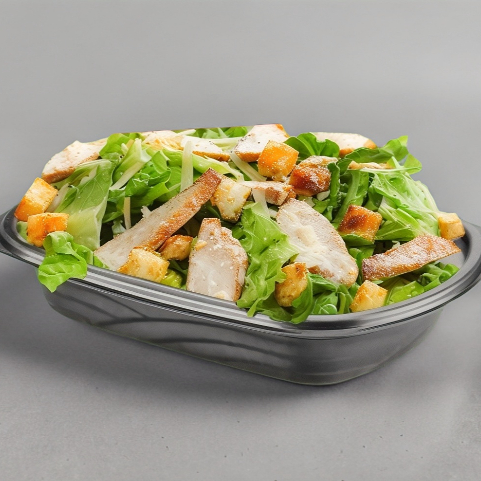 Lechuga, crotones, pechuga de pollo, aguacate, queso parmesano y aderezo ranch.
