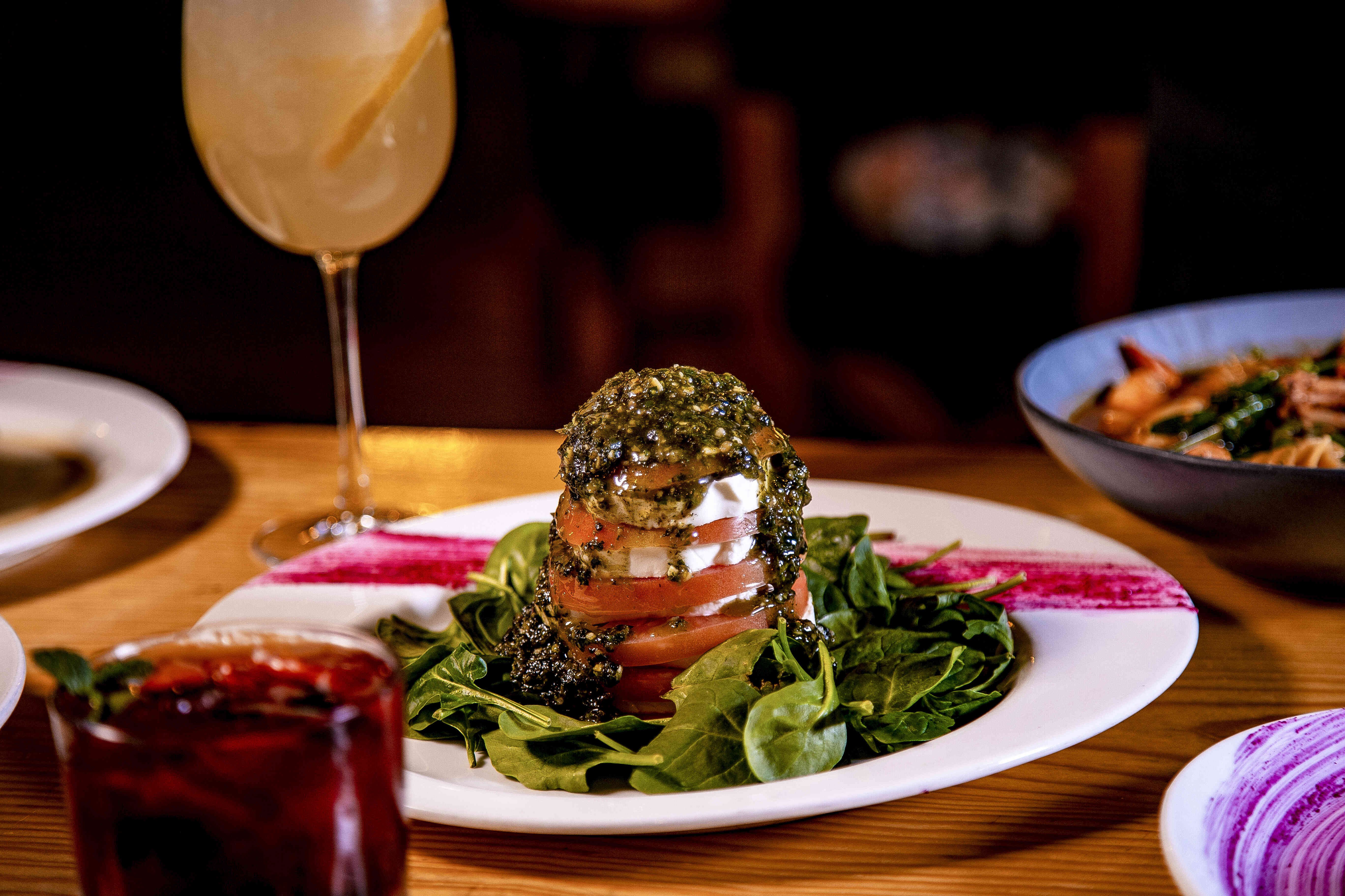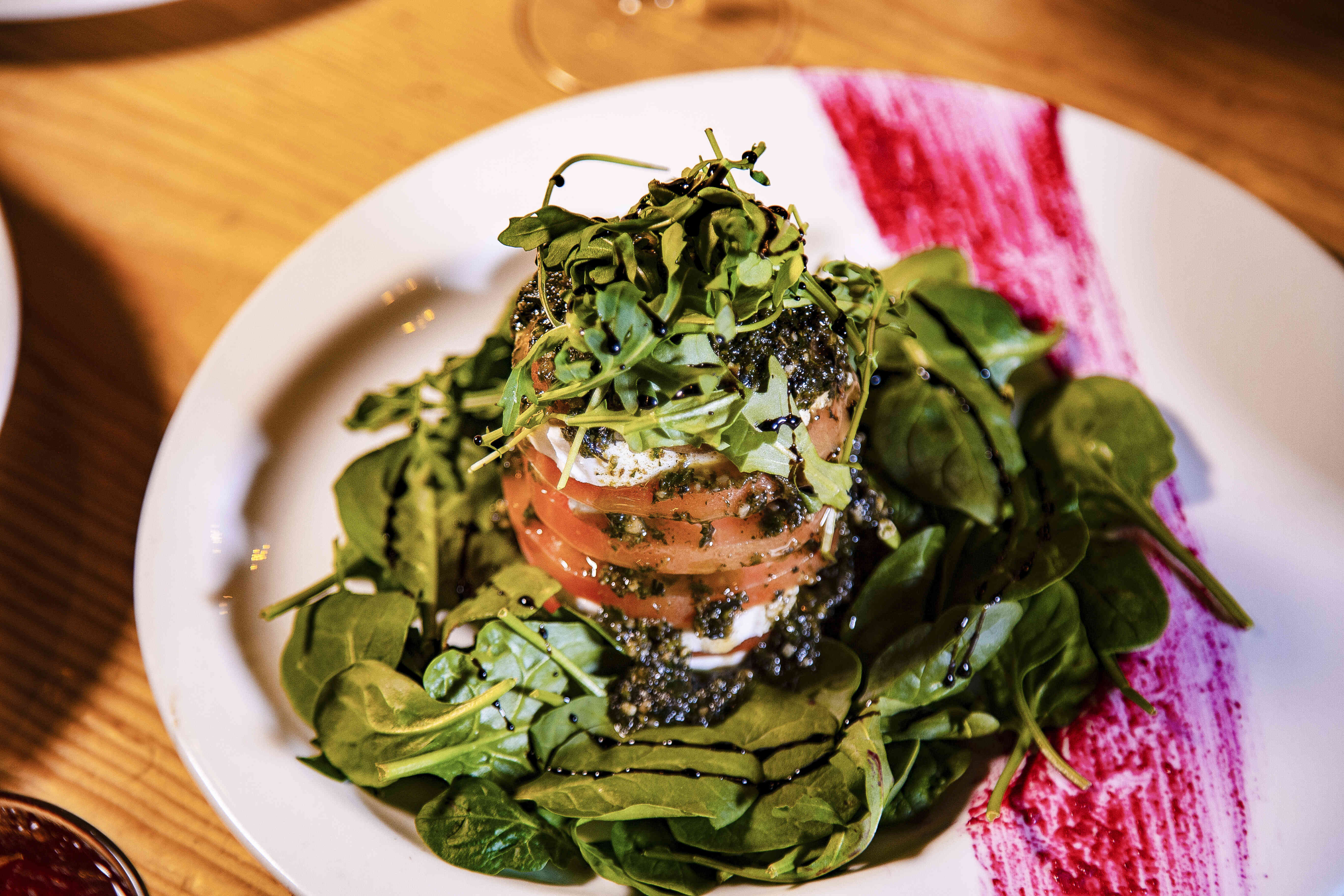 Cama de espinacas acompañada de rodajas de tomate y queso mozzarella fresco, aderezadas con una reducción de vinagre balsámico. Pregunte por su capresse horneada